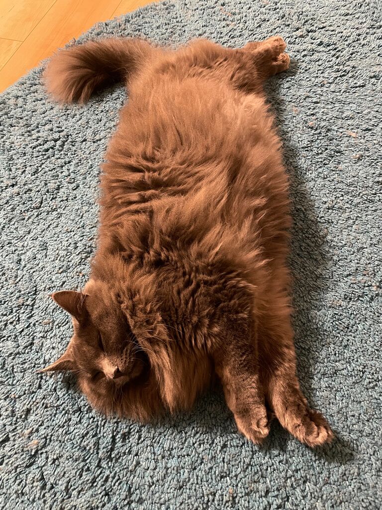 きれいになったじゅうたんの上で、さっそくゴロゴロ。