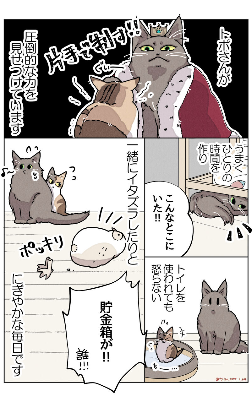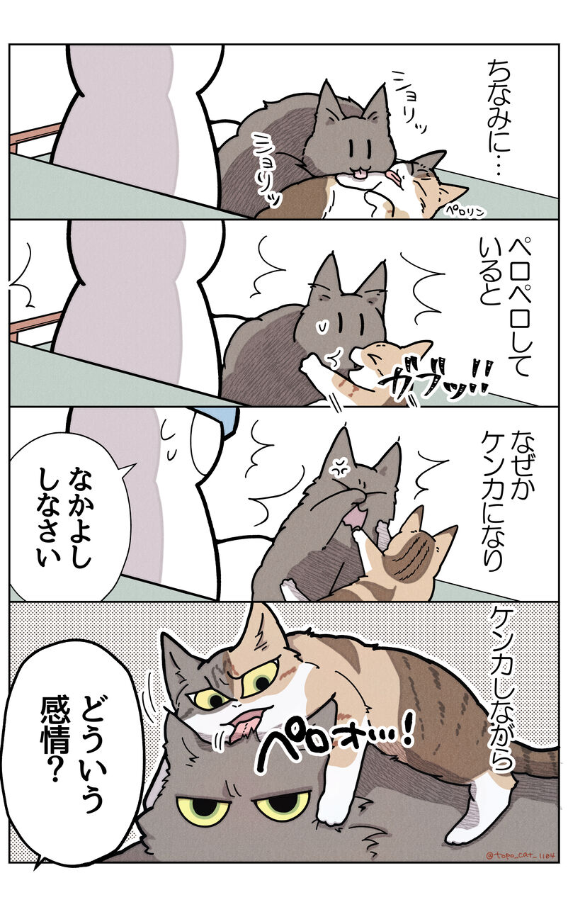トポが圧倒的に強いのと、お互いに子猫だったので何とかなったのかな?と勝手に思っています。