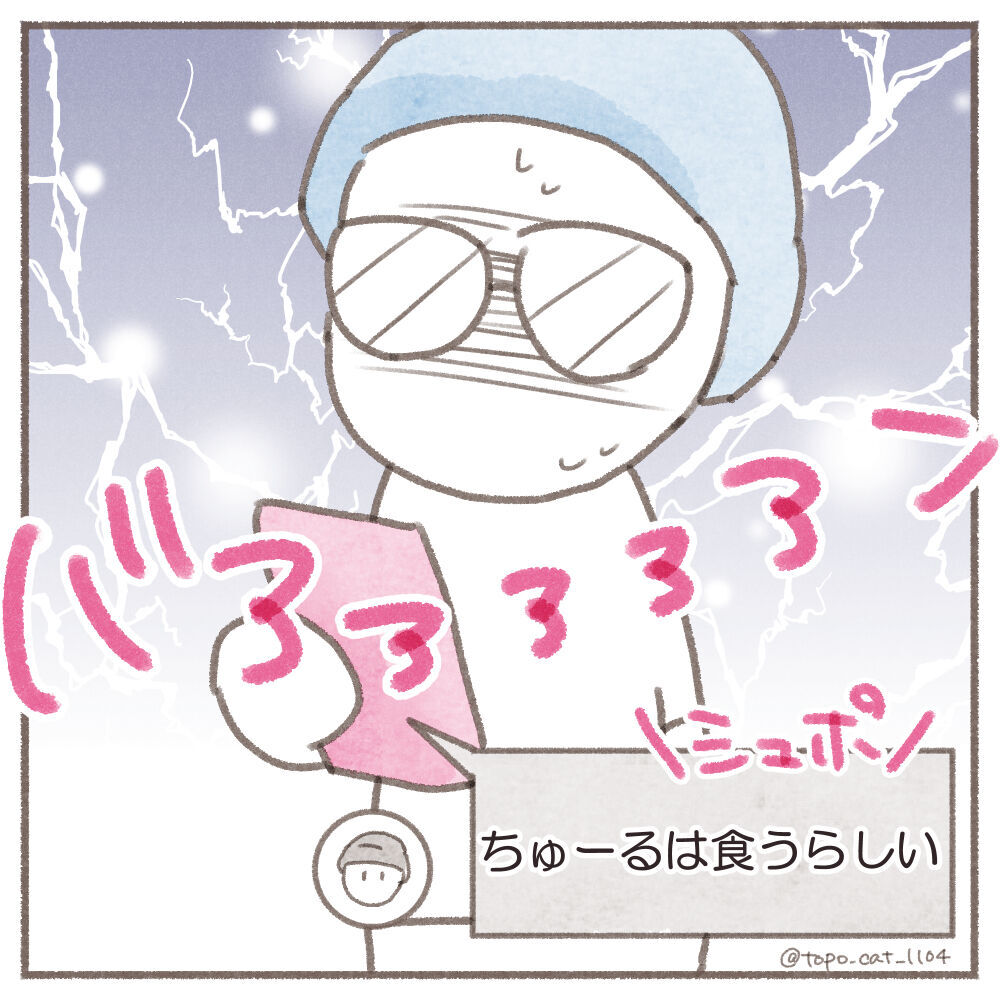 (怖がってるのにちゅーるは食べられる