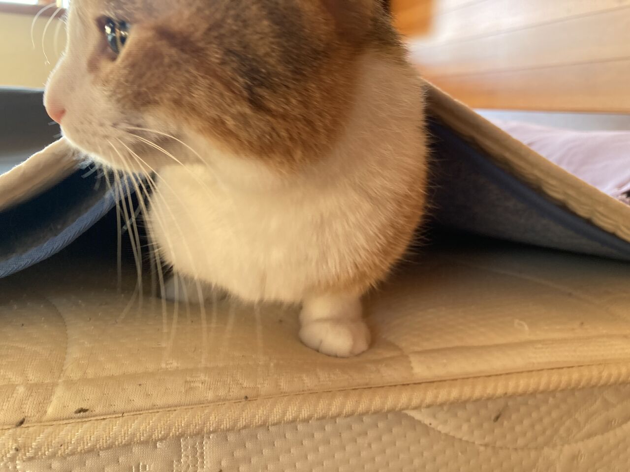 ハナちゃんも隠れます。 2025年01月13日 07:00 ハナのお気に入りスポット。敷きパッドとマットレスの間。安心するみたいです。暖かいし。お腹が減ったようで、出てきました。▼見てね! トポハナにっき毎日更新してます!またきてね 「猫のお世話」カテゴリの最新記事 タグ :#猫#ぺット#日記 < 前の記事次の記事 > コメント コメントフォーム 名前 コメント 記事の評価 リセット リセット 顔 星 情報を記憶 コメントを投稿する